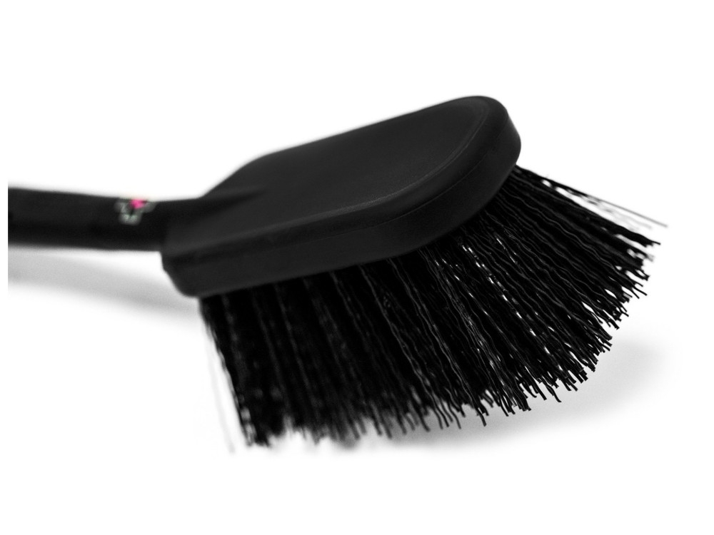 Muc-Off ščetka za odstranjevanje umazanije s pnevmatik in sprednji verižnikov ter zadnjih zobnikov, kasete. Ščetine so močnejše vendar ne uničujjeo ne pnevmatik ne zobnikov.